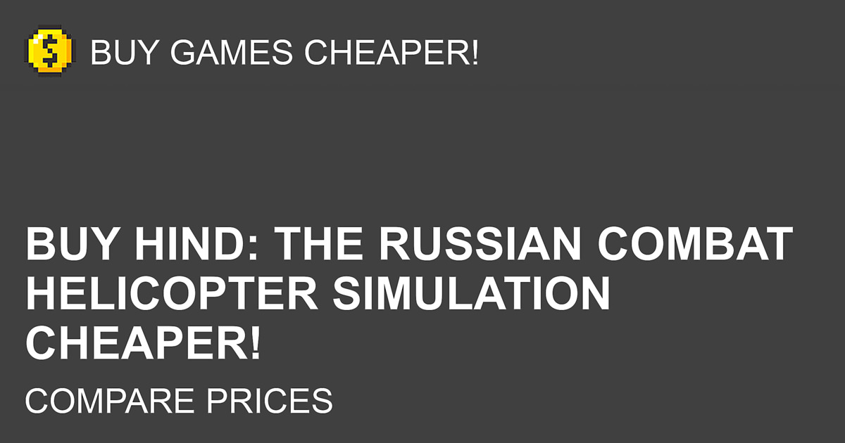 Buy HIND: The Russian Combat Helicopter Simulation for PC cd key cheaper! Compare prices in trusted game stores to find the lowest one. You can filter regions (region free, global, EU, US, etc), game editions, platforms, shops and activations services. Buy, activate the key, download the game and stop paying double price for HIND: The Russian Combat Helicopter Simulation and other games with BuyGamesCheaper comparison engine!